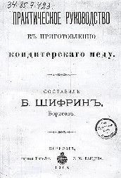 Говорили, что Бенцион Шифрин не боялся конкуренции и охотно делился секретами своего умения по изготовлению медово-маковых деликатесов. Рассказывали, что с этой целью он издавал книжки. Странно, но мне захотелось проверить этот факт. Используя посещение по служебной надобности различных библиотек, я между делом интересовался, нет ли в них следов литературного творчества борисовского кондитера. И такой след я обнаружил в Российской Национальной библиотеке (бывш. "Салтыковка") в Петербурге. Это была изданная в 1909 году брошюра, написанная по-русски. Языком одесского Привоза она рассказывает, как надо готовить мёд для приготовления пряников. Судя по этой книжонке, автор не слыл знатоком изящной словесности, но профессионалом в своем деле он, видимо, был непревзойденным (надо упомянуть, что помогала ему жена и верный друг Хана-Лея).