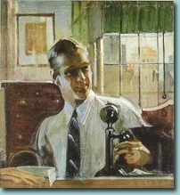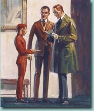 Two Men Receiving Message from Bellhop Двое мужчин, принимающих письмо от посыльного