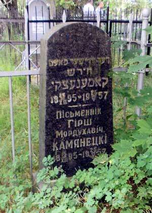 Кстати, Каменецкий был одним из последних литераторов Беларуси, которые писали на идише. Когда-то этот язык был настолько распространен в республике, что его с детства знали не только евреи. Нынче он забыт, но надпись на идише можно увидеть на памятнике поэту. Мало кто может ее прочитать.