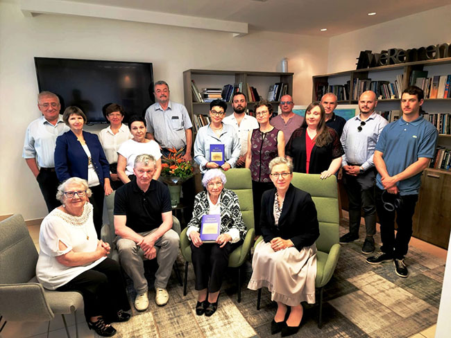 Группа участников презентации. В переднем ряду крайняя справа - посол Литвы в Израиле Лина Антанавичене; крайний слева – Сергей Шупа; между ними – Раиса Кульбак, выпускница 1952 года 6-й Борисовской средней школы.