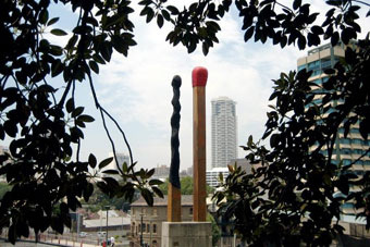 Памятник спичке возле здания бывшей спичфабрики (г.Акко, Израиль)