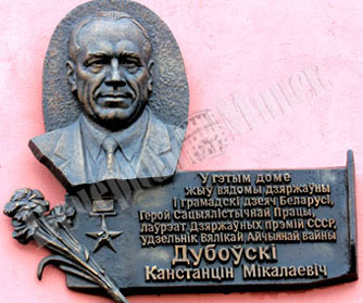 Эта мемориальная доска установлена в Минске на доме, где жил Герой Соцтруда К. Дубовский А увековечила ли своего земляка деревня Иканы?