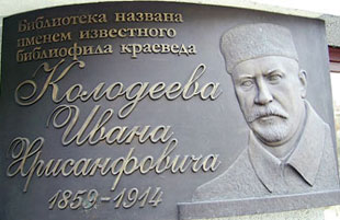 Доска на здании Библиотеки им. И.Колодеева Фото А. Мозгова