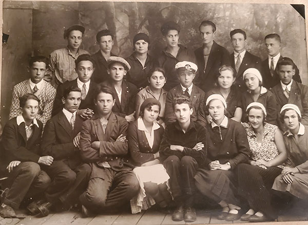 Компания друзей "Псарня". Борисов, 30 июля 1932 года. Верхний ряд, слева направо: Шефлянд, Клионский, Таня Вронская, Мебель, Кушнер, Гринштейн, Капилевич. Второй ряд: Фишкинд, Шифрин, Богдановский, Рахиль Мебель, Шейнеман, Ира Ивашина, Рахиль Бененсон, Мазо Г. Нижний ряд: Элькинд, Родов, Аркадий Берман, Ида Шейнеман, Мазо, Гершенович, Оля Мазо, Фрид. Из альбома Марины Ванинской