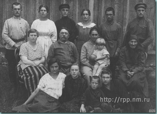 Семья Гаховичей. В третьем ряду третья справа - Лидия Гахович, жена видного государственного и общественного деятеля А.А.Хацкевича. Деревня Неманица, 1925 год