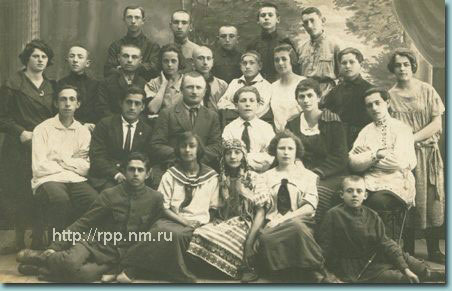 Драмкружок 1-й Борисовской школы. Во втором ряду второй слева - режиссер Маркевич. 1926 г.