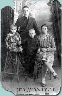 Многолетний директор Сободской начальной школы Александр Дмитриевич Сацук с семьей. Забашевичи, 1939 год. Из альбома А.Тисецкого.