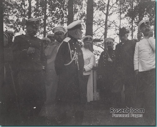 Справа налево: штабс-капитан В.Н. Дрейер (впоследствии генерал), И.Х. Колодеев, неизвестный, генерал-майор П.К. Ренненкампф. Борисов, 30 июня 1903 года. Снимок приобретен в Государственном историческом музее, Москва
