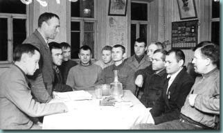 Председатель колхоза "Маяк социализма" И.М.Ровба проводит совещание с бригадирами. 1940 год.