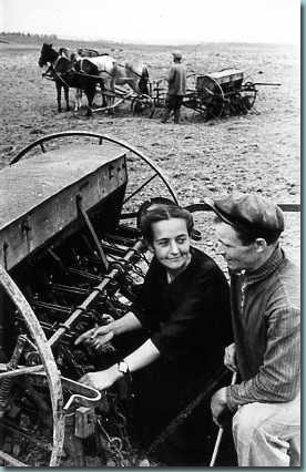 Агроном колхоза "Маяк социализма" А.Вержбицкая и звеньевой В.Прохорович, 1947 год.