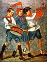У меня долго хранилась статья из белорусской республиканской газеты «Пiонер Беларусi» за 1937 год. Она занимает два номера (45 и 46) и озаглавлена тем же примитивом из большевистских святцев - «Настоящий пионер» («Сапраудны пiонер»). Это о школьнике Меере Меркинде, который повторил "подвиг" Павлика Морозова - донес в милицию на своего отца-сапожника, обвинив его в хищении социалистической собственности. Сына наградили путевкой в элитный пионерский лагерь "Артек" на один месяц, а отца отправили в тюрьму на годы.
