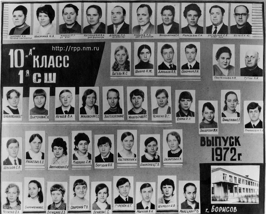 Выпуск 10-А класса 1-й средней школы г. Борисова. 1972 год.