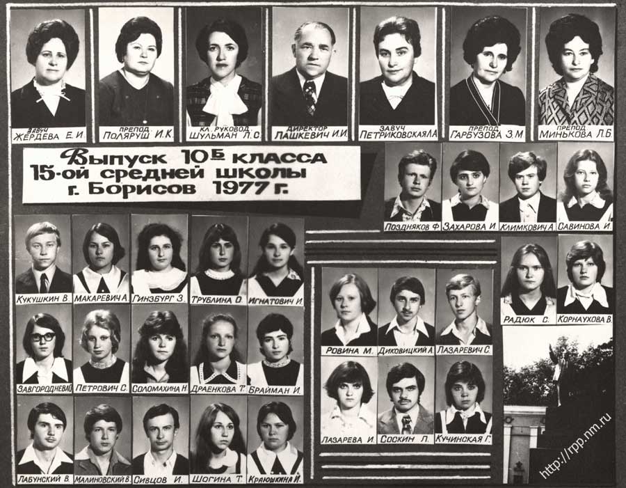 Выпуск 10-Б класса 15-й средней школы г. Борисова. 1977 год.