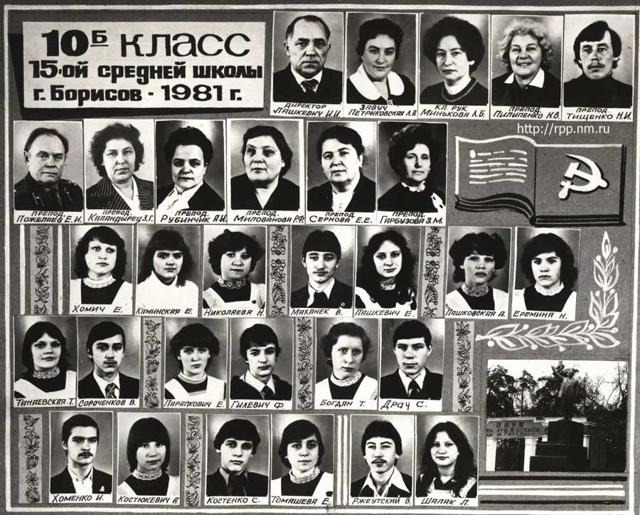 Выпуск 10-Б класса 15-й средней школы г. Борисова. 1981 год.