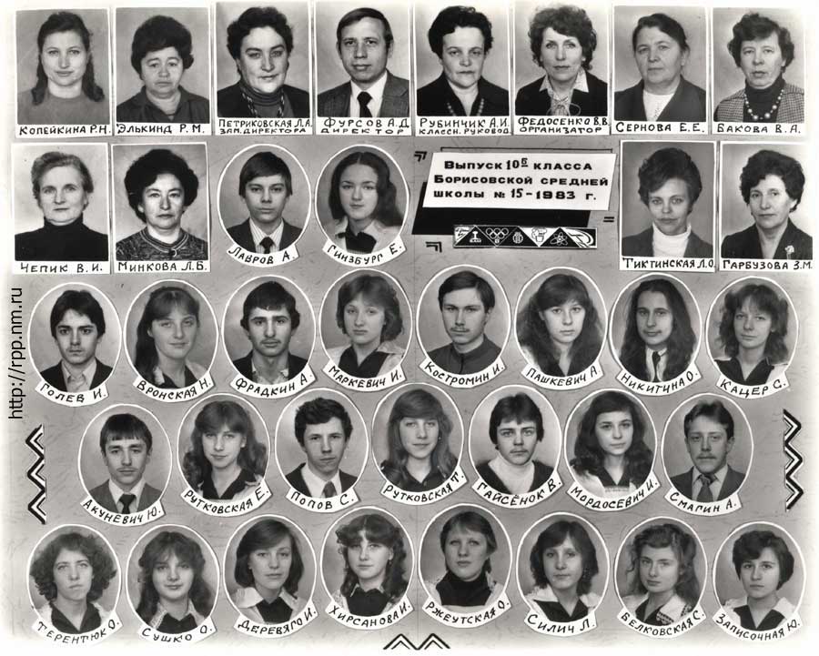 Выпуск 10-Б класса 15-й средней школы г. Борисова. 1983 год.