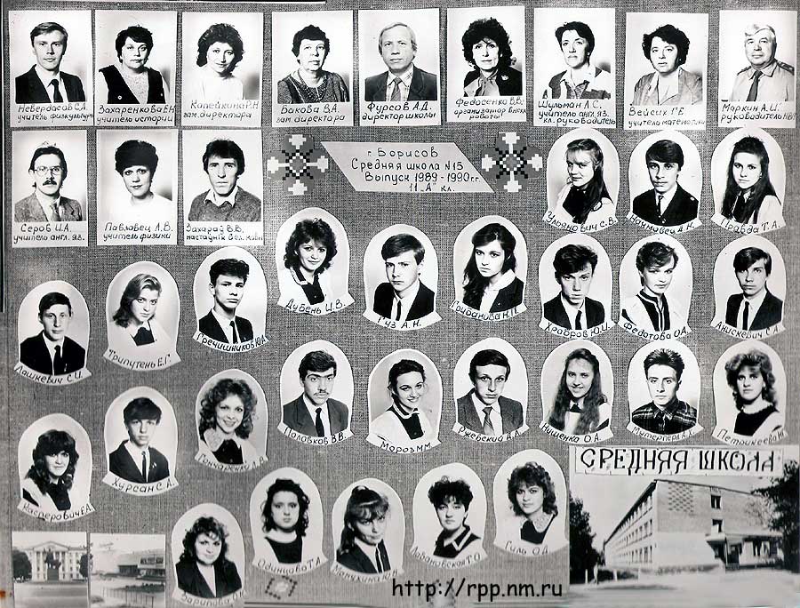 Выпуск 11-А класса 15-й средней школы г. Борисова. 1990 год.