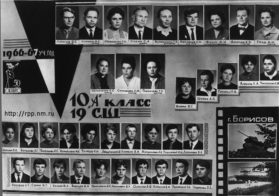 Выпуск 10-А класса 19-й средней школы г. Борисова. 1967 год.