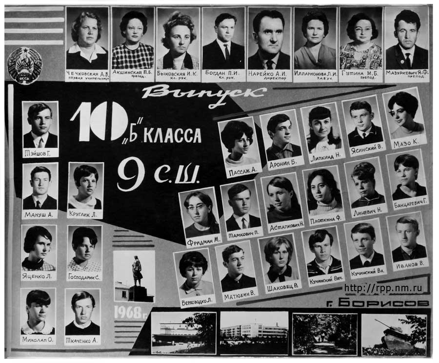 Выпуск 10-Б класса 9-й средней школы. Борисов. 1968 год.