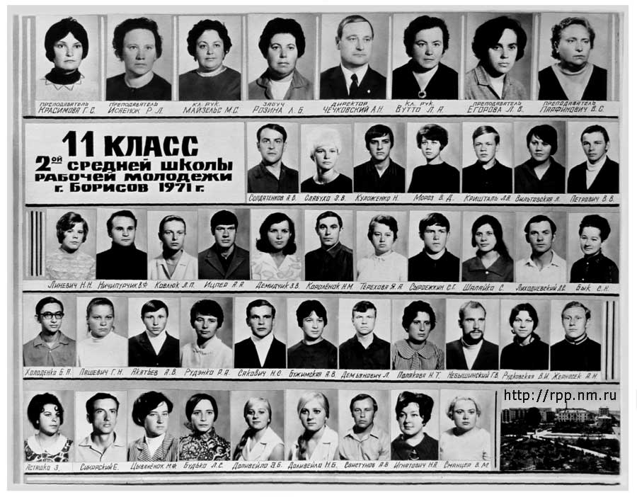 Выпуск 11 класса 2-й средней школы рабочей молодежи. Борисов. 1971 год.