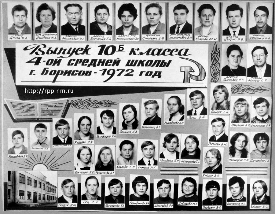 Выпуск 10-Б класса 4-й средней школы. Борисов. 1972 год.
