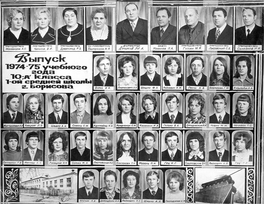 Выпуск 10-A класса 1-й средней школы г. Борисова. 1975 год.