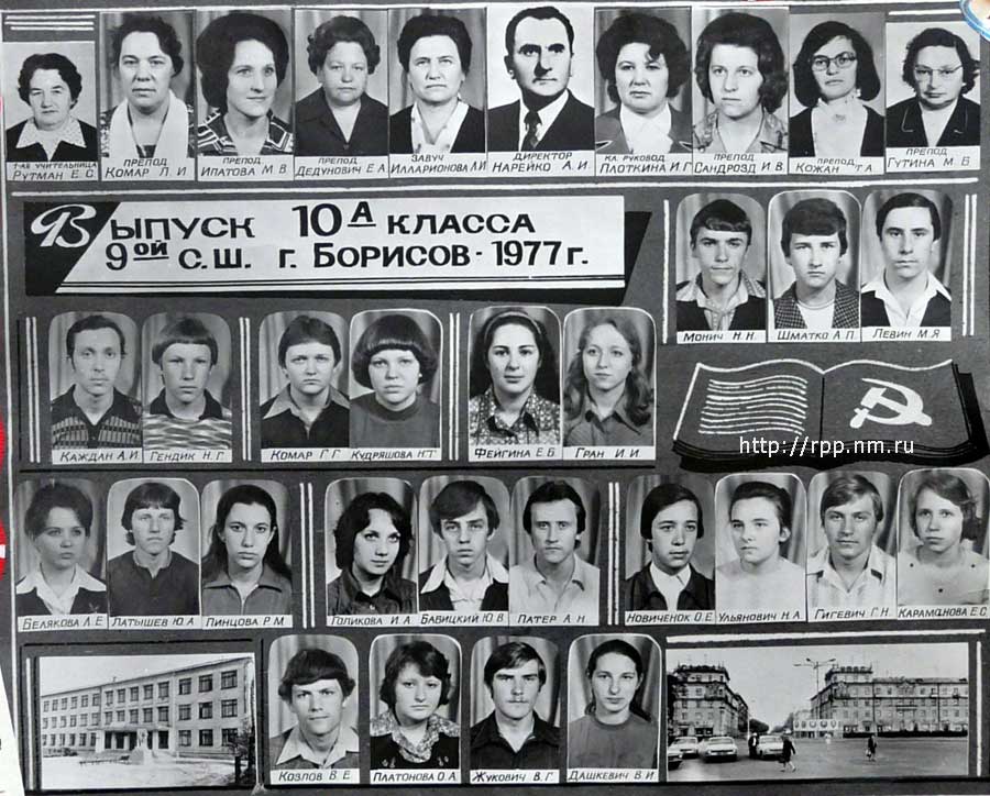 Выпуск 10-А класса 9-й средней школы г. Борисова. 1977 год.