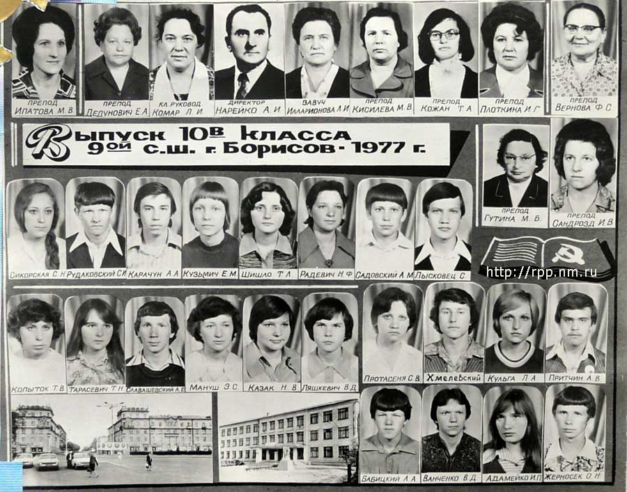 Выпуск 10-В класса 9-й средней школы г. Борисова. 1977 год.