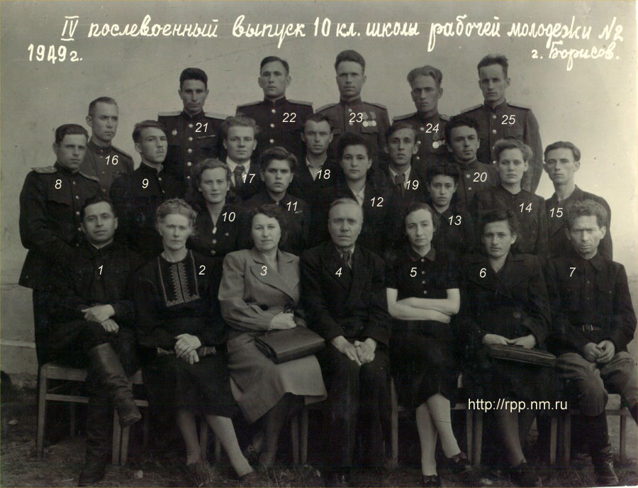 Выпуск 10 класса школы рабочей молодежи №2 г.Борисова. 1949 год.
