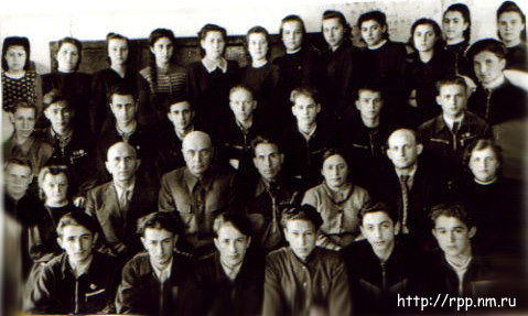 2-й ряд: Красник Артур, Канторович Бася, преподаватели Ляшко А.М.(история), директор школы Алай И.М.(физрук), Арончук З.А.(математика), Гутин М.Я.(черчение), Лисота Галина.