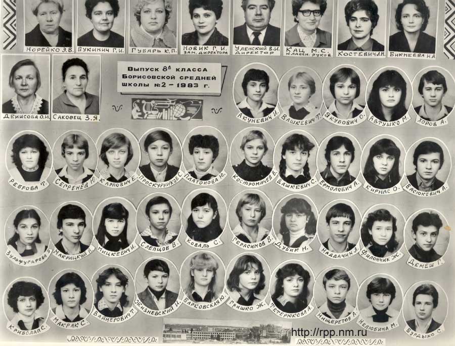 Выпуск 10-А класса 2-й средней школы г. Борисова. 1983 год.