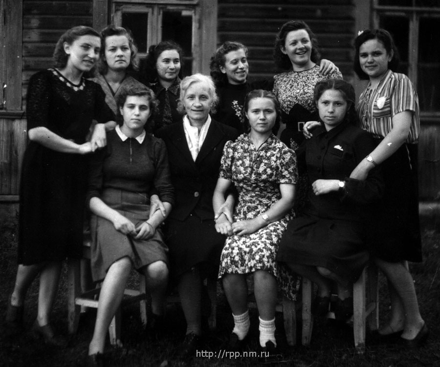 2-й ряд: Фридлянд Фрида, Муринова Алла, Гельфанд Фрида, Самцевич Галя, Фролова Валя, Сапего Зина.