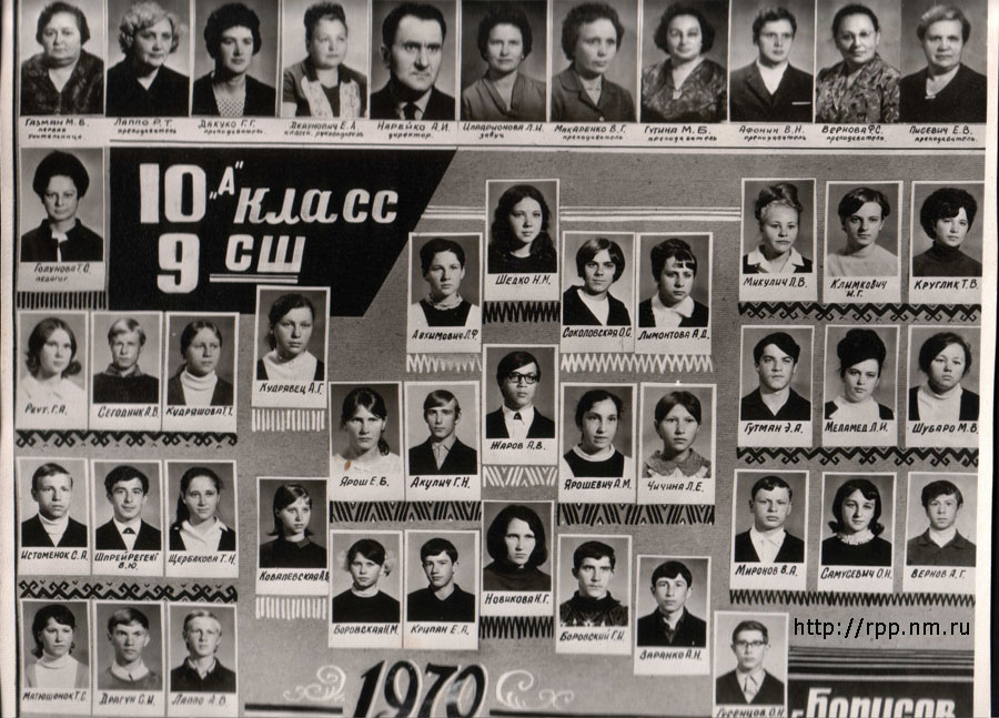 Выпуск 10-А класса 9-й средней школы г. Борисова. 1970 год.