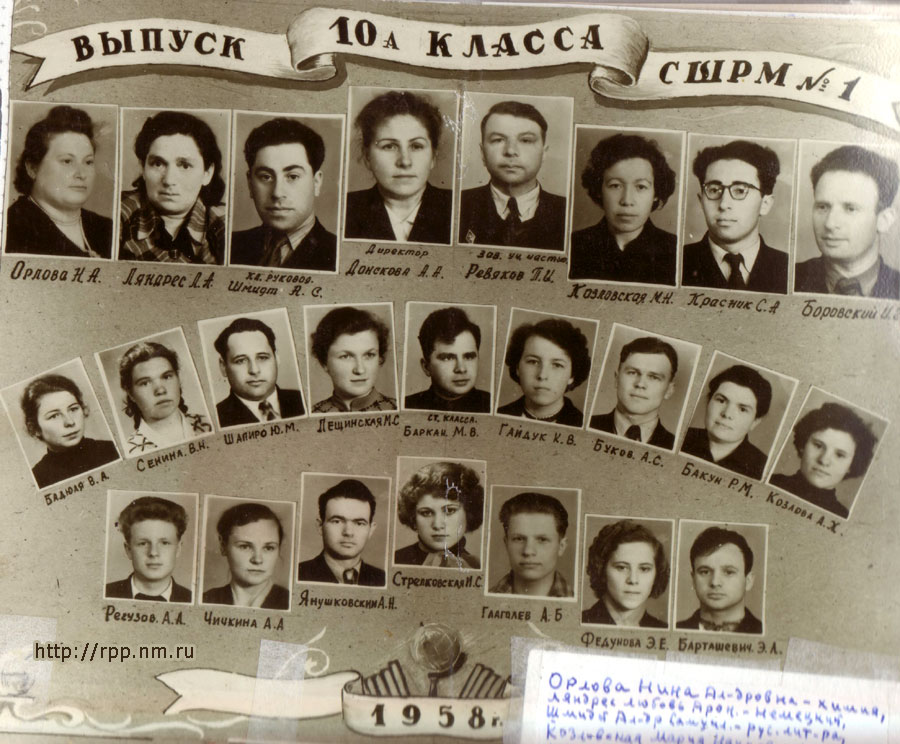 Выпуск 10-А класса школы рабочей молодежи № 1. Борисов. 1958 год.