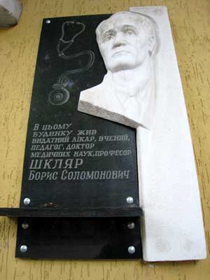 Выпускник медфака Киевского университета Борис Соломонович Шкляр (1896-1961) был одним из основателей Винницкого медицинского института, много лет заведовал там кафедрой, получил широкую известность в Украине, завоевал огромный авторитет среди коллег-ученых и пациентов. Профессор был прекрасным терапевтом, педагогом и лектором, интересным собеседником, играл на скрипке, рисовал, писал стихи. Так что на доме, где он родился, можно было без зазрения совести установить памятный знак в его честь. Однако тот дом уничтожен войной, которая отняла жизнь и у его хозяина, убитого в гетто.